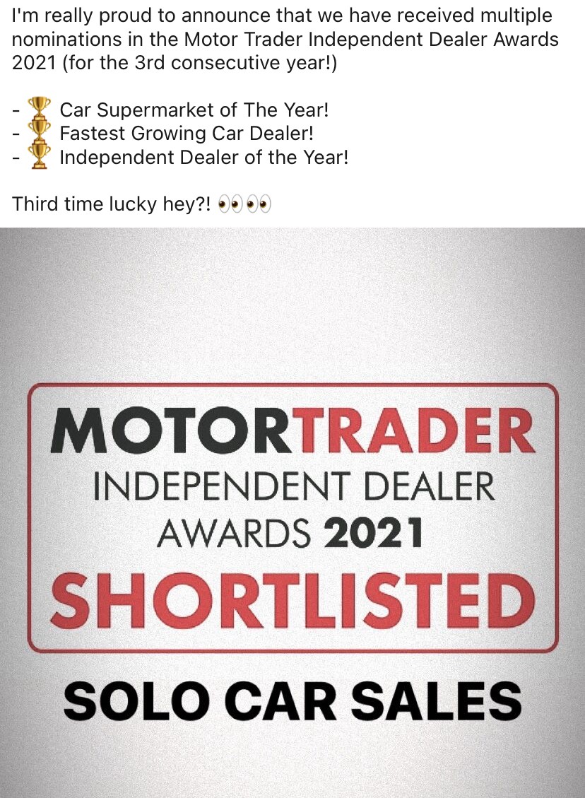 I have bought 2 fantastic cars from Solo Cars and will be buying a 3rd soon. Always an amazing service and wouldnt go anywhere else to buy or have my car maintained. I couldnt recommend Solo Car Sales any hire.