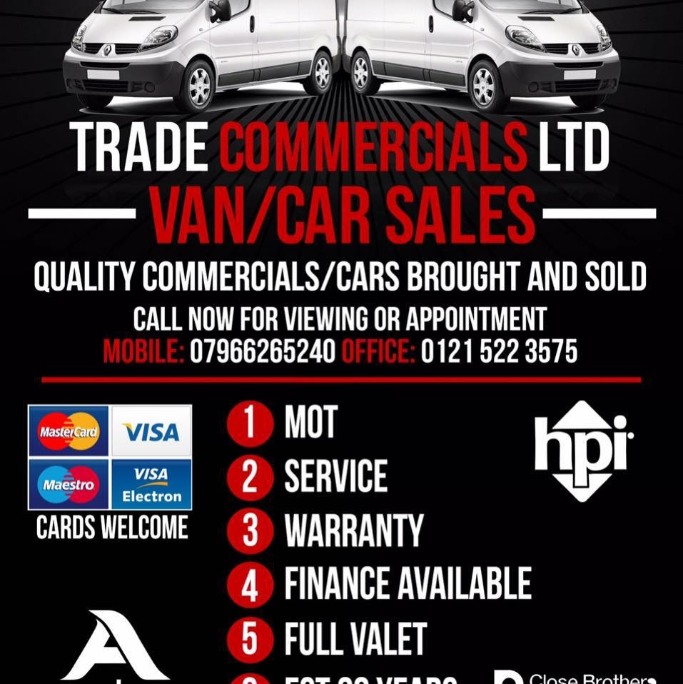 I purchased a van from Trade commercials Tipton 3 months ago and unfortunately the gear box went on it. I took it back and he repaired it and had the van back to me within 3 days. They didn’t try to get out of doing the work and it didn’t cost me a penny. I have already recommended them to my friends in the building trade. Thank you.